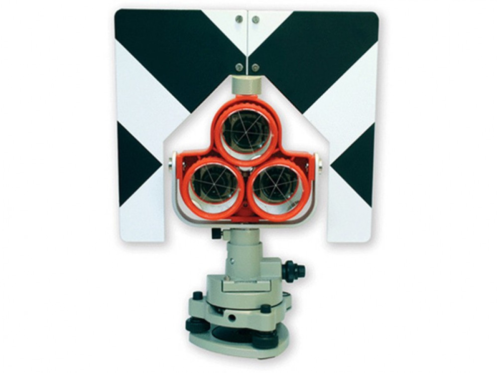 Трехпризменная система RGK HD34 - используется для проведения работ с применением тахеометров и светодальномеров при необходимости измерений на большие дистанции. Трехпризменный отражатель необходим для отражения модулированного излучения светодальномера. В качестве отражающего элемента используется призма, основанием отражателя является подставка для принудительного центрирования отражателя, состоящая из адаптера с оптическим отвесом и трегера с круглым уровнем.